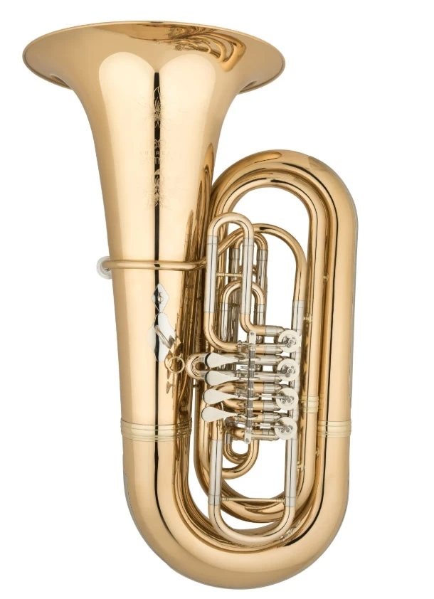 De EBB825G onderscheidt zich door zijn volledige constructie in goudmessing, wat zorgt voor een warme, rijke klankkleur met extra diepte en resonantie. Dankzij de vier vooraan geplaatste roterende ventielen en een boremaat van .748” levert dit instrument een vloeiende speelervaring met een uitstekende projectie. De grote beker van 18 3/4” maakt het mogelijk om een breed dynamisch spectrum te bespelen, van subtiele passages tot krachtige tutti’s.