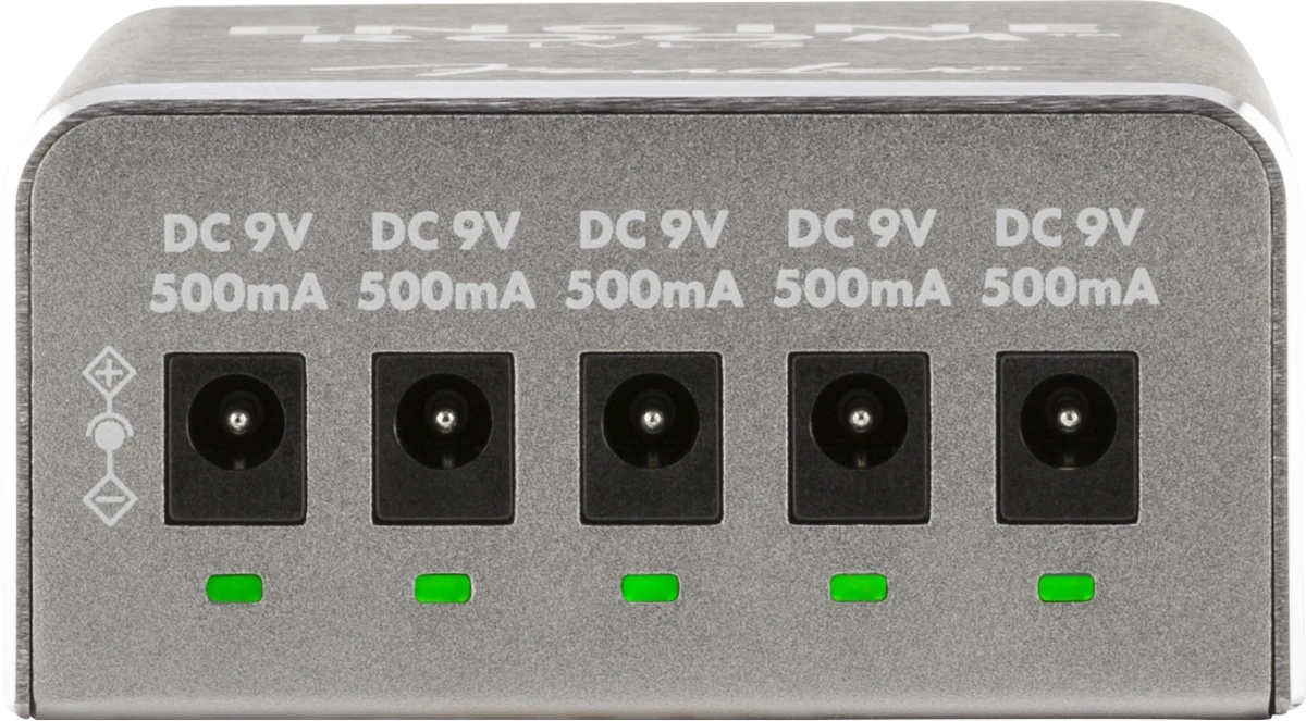* Uitgangen: 5 afzonderlijke, geïsoleerde 9 V DC outputs, elk tot 500 mA