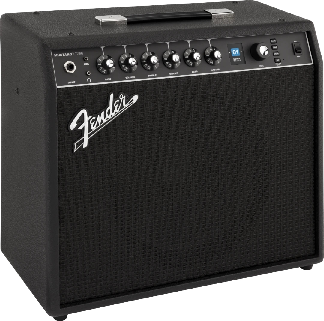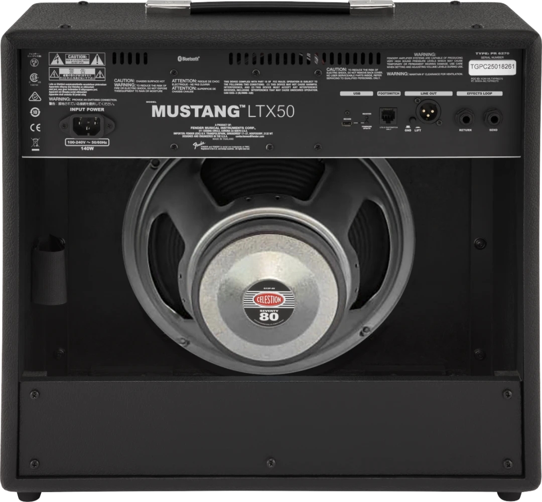De Fender Mustang LTX50 is een veelzijdige 50-watt modelling gitaarversterker die klassieke Fender-sounds combineert met moderne technologie. Met 50 amp- en effectmodellen, 100 presets en Bluetooth-bediening via de Fender Tone-app is dit een complete versterker voor zowel thuis, studio als podium. De 12” Celestion G12P-80 speaker levert een helder en krachtig geluid, en dankzij het kleurendisplay met ingebouwde tuner is de bediening intuïtief en overzichtelijk. De LTX50 biedt daarnaast uitgebreide aansluitmogelijkheden, waaronder USB-C opname, Bluetooth audio, XLR line-out, effects loop, en een hoofdtelefoonuitgang voor stil oefenen.