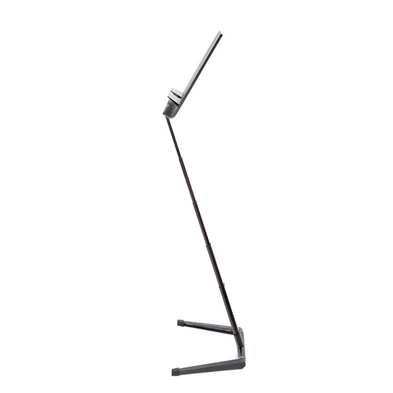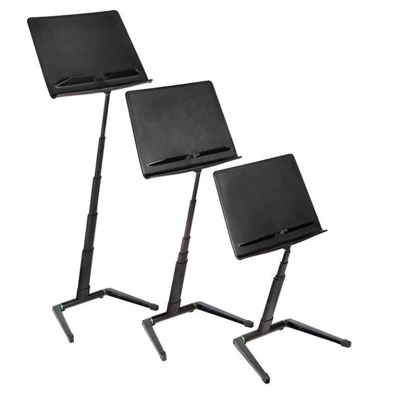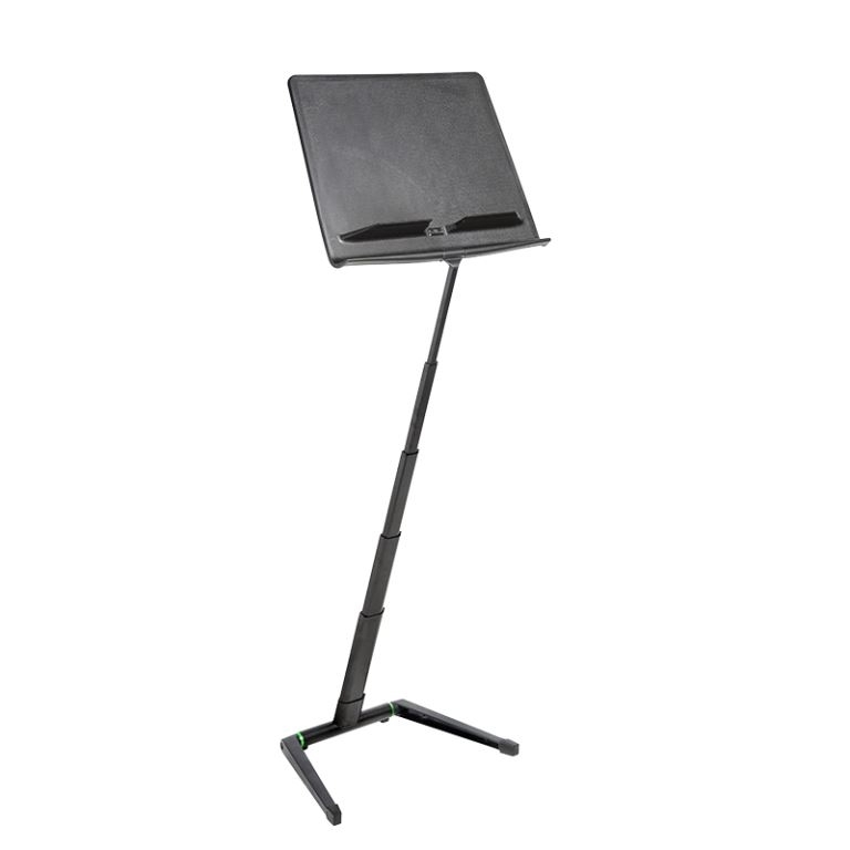Een muziekstandaard van professionele kwaliteit met een volledige hoogteaanpassing, stabiliteit en extra muzieklade van volledige grootte.