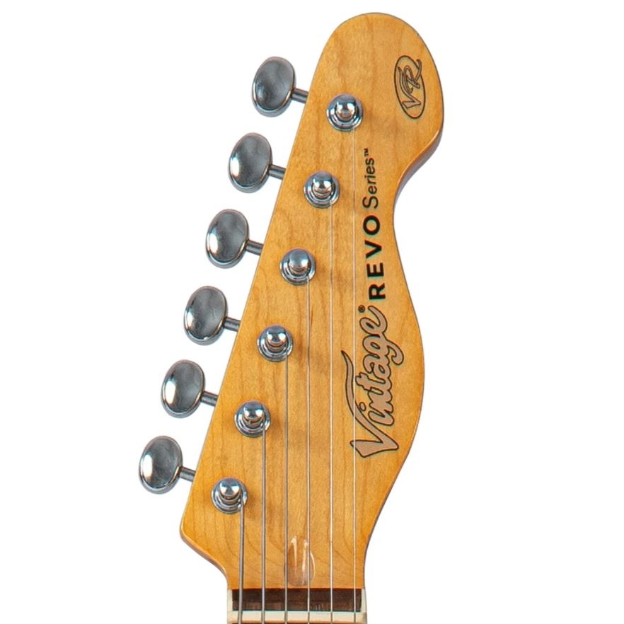 Met een esdoornhals, een 22-frets fingerboard met binding en blokinlays, is de schattige Revo Vision uitgerust met een 5-weg selector schakelaar, Wilkinson machine heads, een GraphTech precisie-gesneden topkam en een Wilkinson 3-saddle hardtail compensatiebrug, klaar om te rocken met een gebonden body die een unieke transonische veerholte aan de achterkant heeft voor extra sustain.